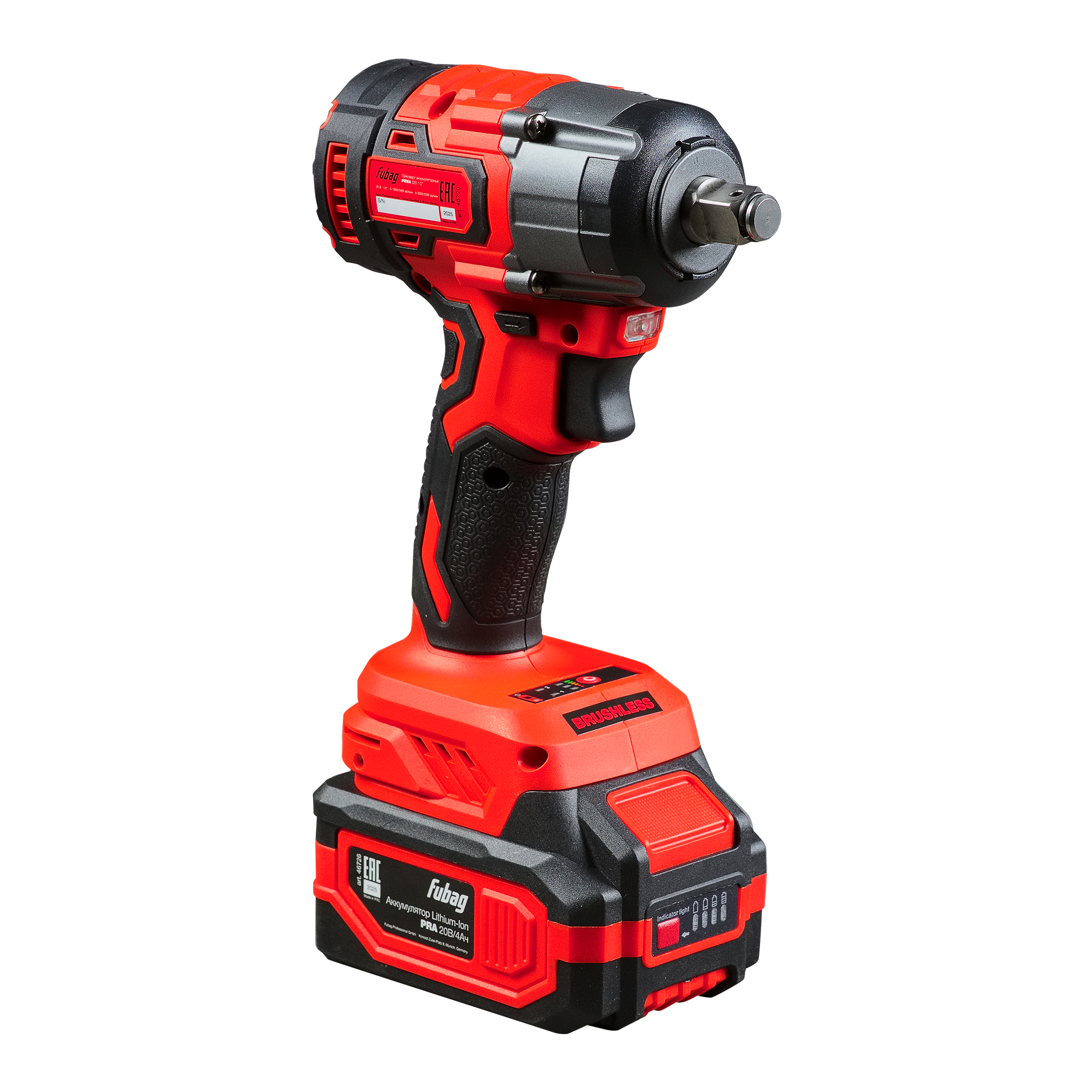 Аккумуляторный ударный гайковерт FUBAG PRWA 320 1/2" – компактный инструмент с бесщёточным двигателем.