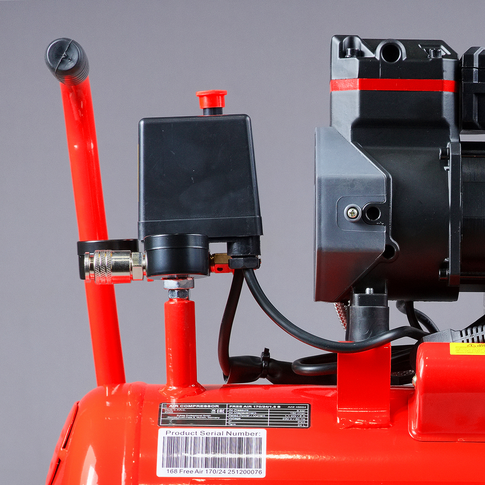 Безмасляный коаксиальный компрессор Free Air 170/24/1.5 S с ресивером на 24 л и производительностью 160 л/мин – отличный выбор для получения чистого воздуха, без примесей масла, для работы с краскопультами, аэрографами и другими окрасочными инструментами.