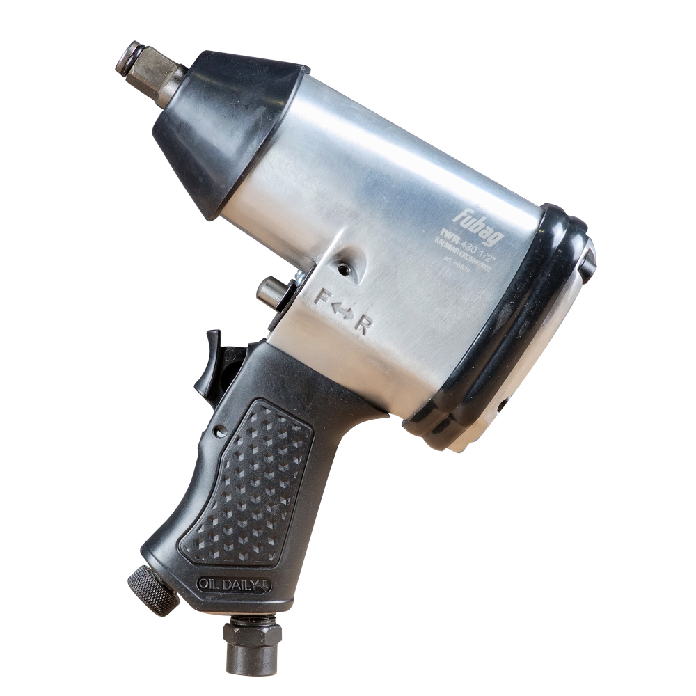 При помощи пневматического гайковерта оператор быстро и без усилий закручивает и раскручивает гайки и болты. Для удобства корпус инструмента выполнен в форме пистолета* (посмотреть можно на примере пневмогайковерта ударного fubag iw720 1/2ʺ). Чтобы начать работу, требуется нажать кнопку, а чтобы завершить – снять палец с «курок». За реверс отвечает отдельный переключатель.