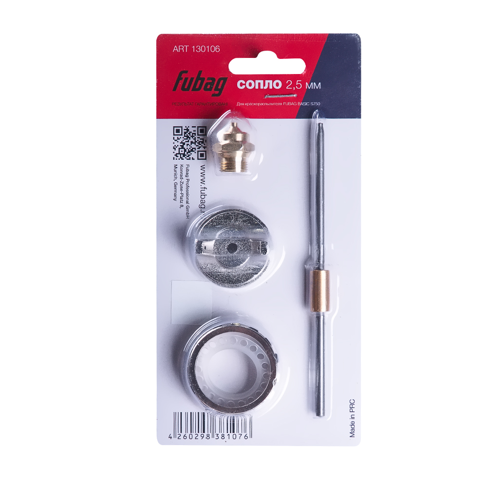 Сопло FUBAG 130106 используется при работе краскопультом FUBAG BASIC S750. Сопло предназначено для распыления лакокрасочных материалов ровным слоем на поверхность. В комплекте: игла, головка, сопло. Диаметр сопла — 2.5 мм.Тут всё идеальноСопло для краскораспылителя работает идеально