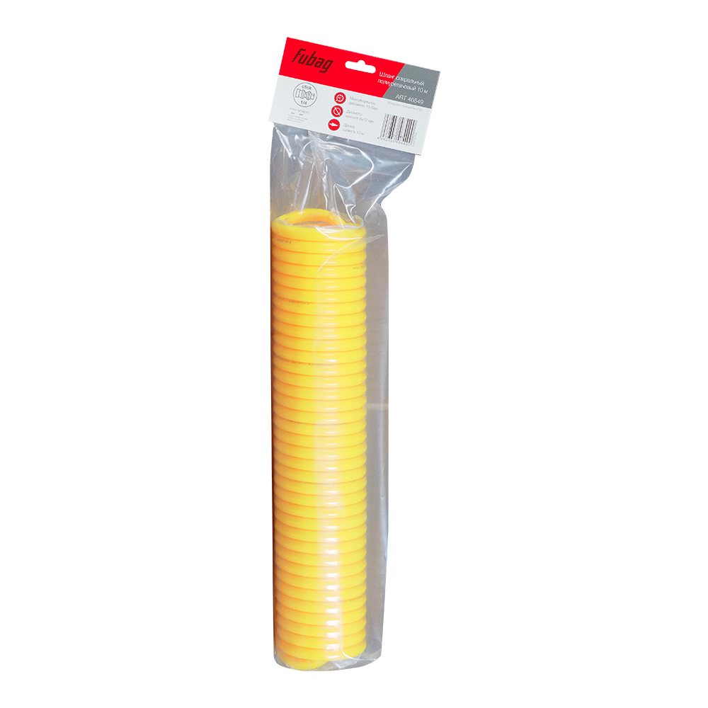 Спиральный шланг FUBAG с фитингами рапид изготовлен из износостойкого полиуретана и рассчитан на рабочее давление до 15 бар. При внутреннем диаметре 8 мм и внешнем 12 мм с длиной 10 метров обеспечивает высокую производительность воздушных систем.
